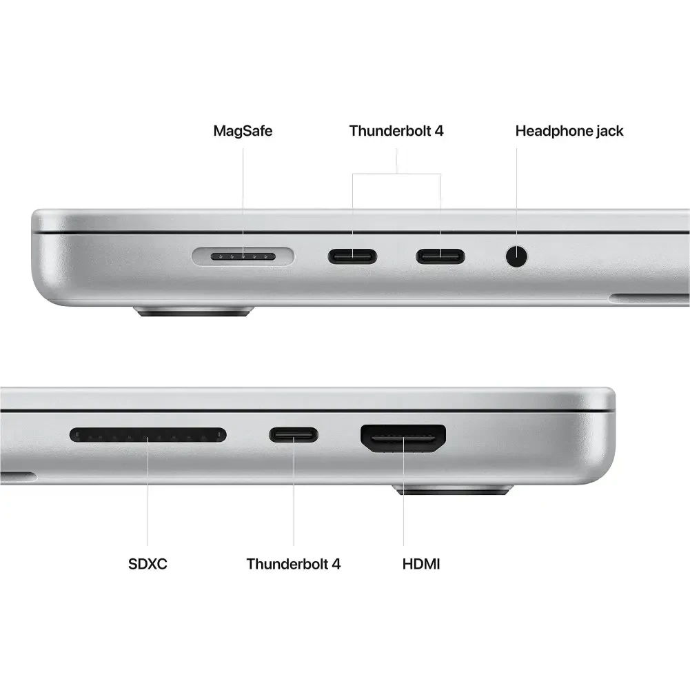 7. Ports: 2 Thunderbolt/USB 4 ports, 3.5mm headphone jack